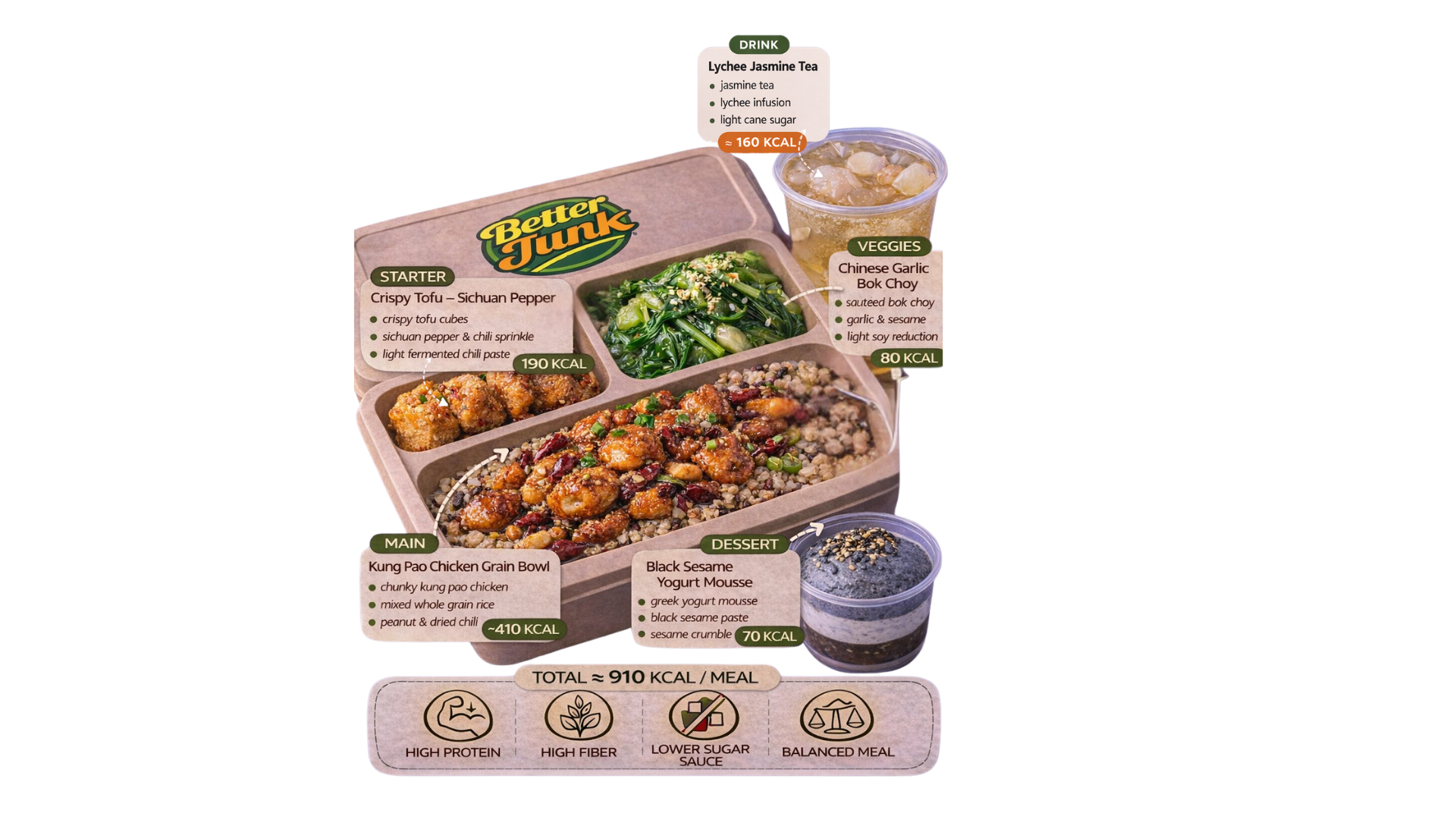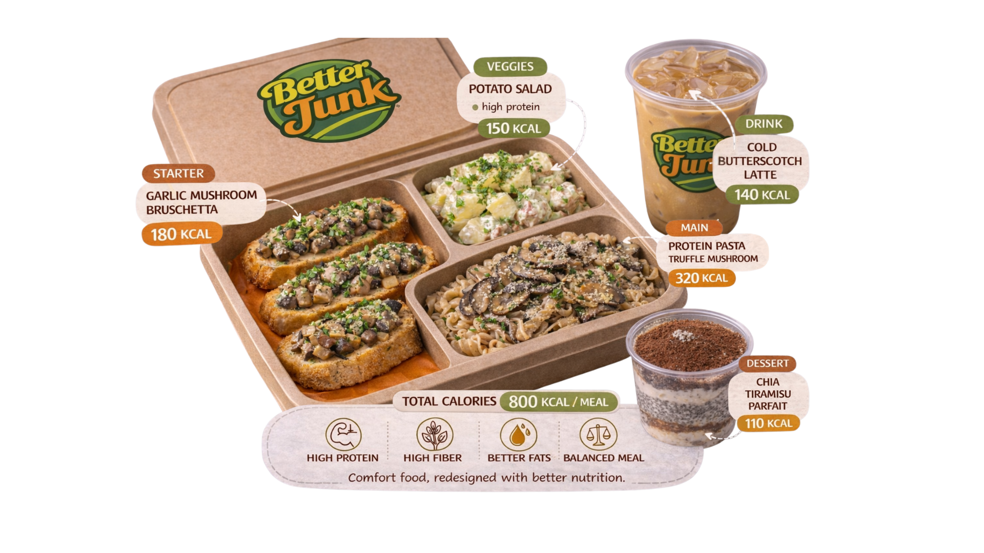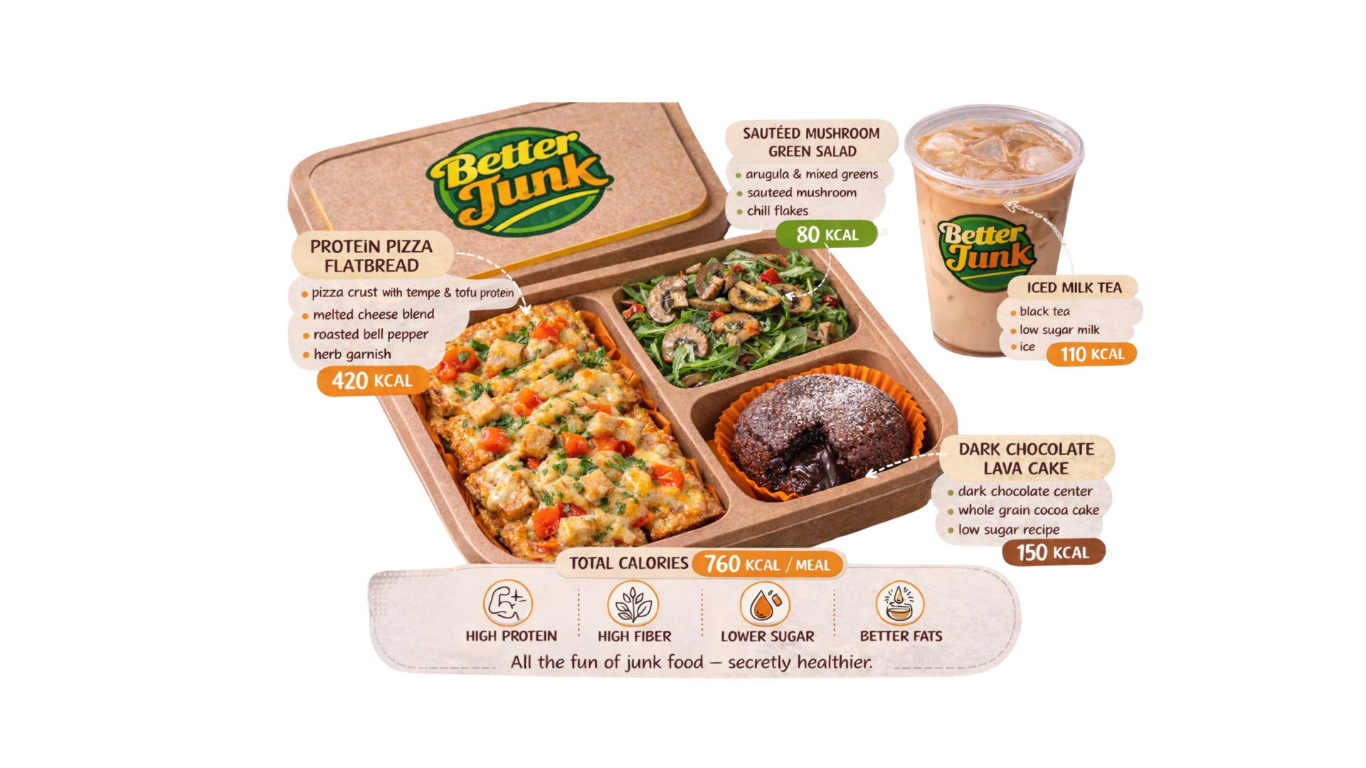 Dengan menggunakan bahan pilihan dan teknik food science, Better Junk menciptakan menu yang tetap memberikan pengalaman makan yang seru, menarik secara visual, namun lebih baik untuk tubuh.